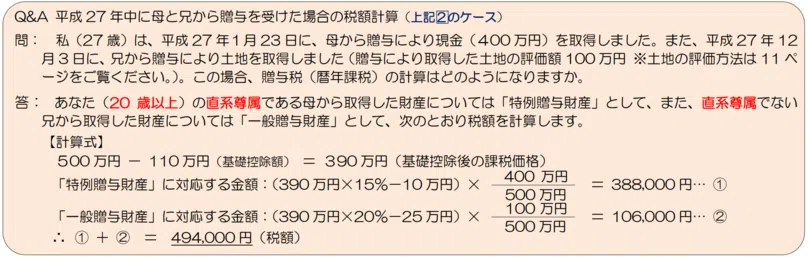 - 兄弟から成人した兄弟への贈与:一般贈与
