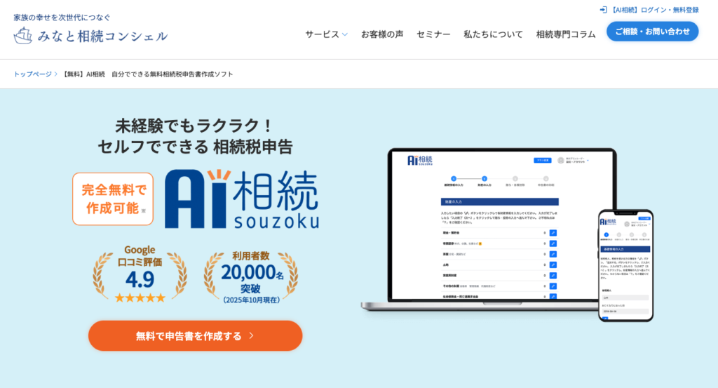最大の利点は、会員登録後にWeb上の入力だけで申告書の出力まで完全無料で完結できることです 。相続シミュレーション機能により、家族構成と財産額を入力すれば相続税額の大まかな試算が可能で、計算結果はメールで送信または会員登録で保存できます 。